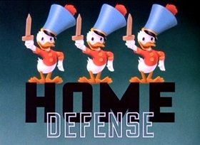 Home Defense adds a dimension to the war at home that we have not seen so far – that of the watch commander or listening post. During World War II, there were citizens who would listen for attacks that might be coming. In this short, Donald Duck is one of those citizens, with the able assistance of his nephews, Huey, Dewey and Louie.